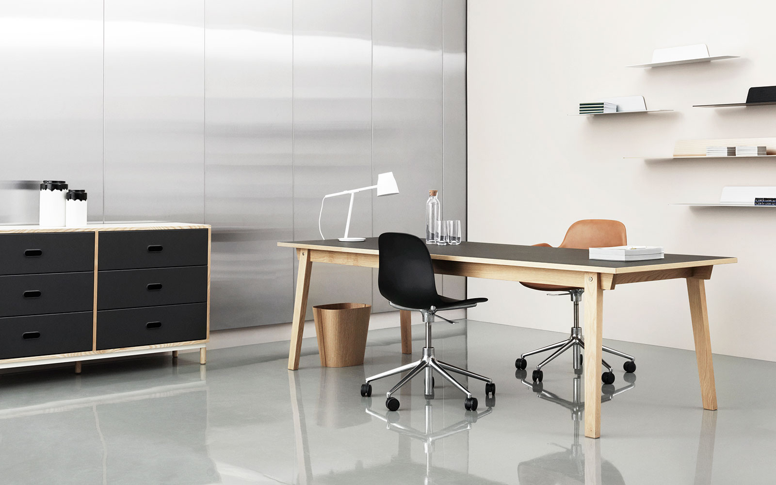 From the small entrepreneur's workshop to sizeable corporate offices, clever workspaces should make way for big and bright ideas. Our collection offers smart storage solutions, comfortable seating and adjustable light sources that offer a vigorous and playful approach to professional environments.