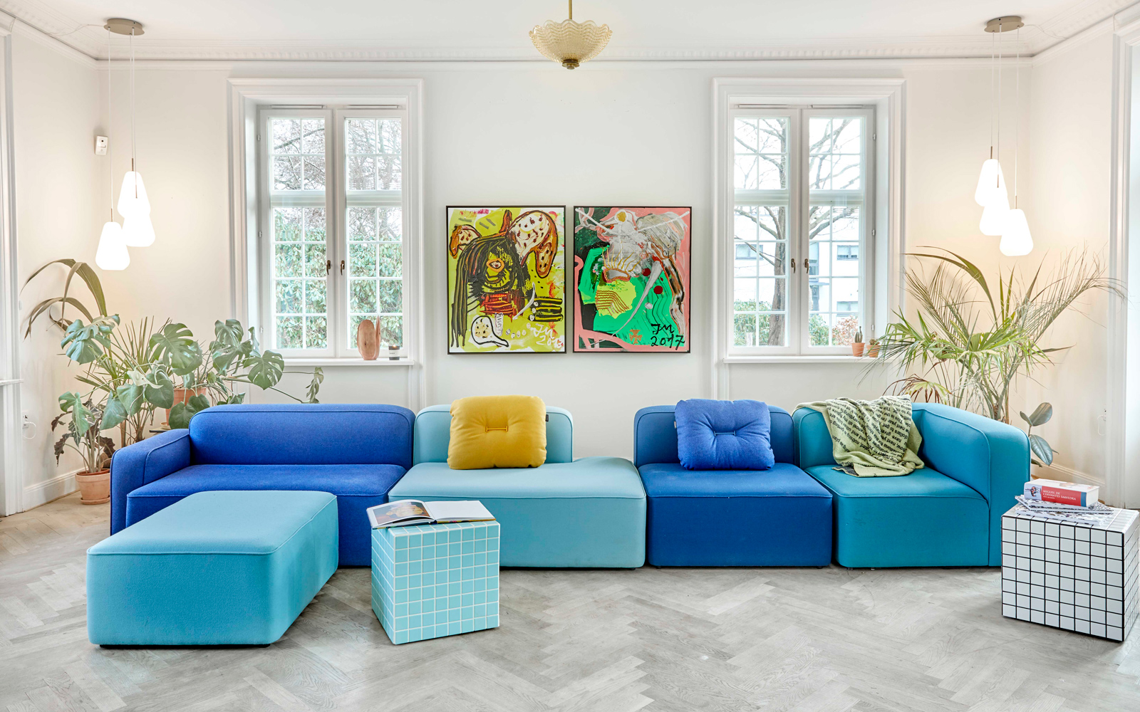 Products: Rope sofa, Kabino Sideboard, Hi cushions, Matelli plaid from the Normann x Brask art collection.