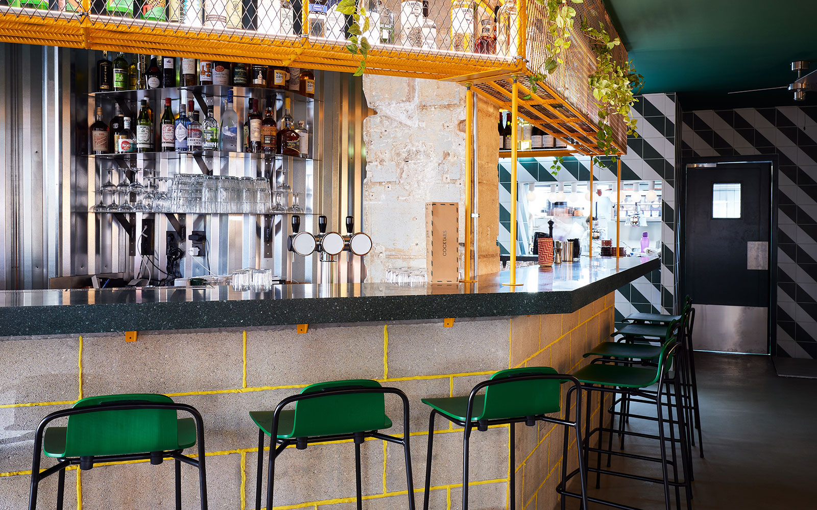 Mamacita is a Mexican restaurant located in the heart of the 9th arrondissement in Paris. To emphasize this new Parisian taqueria’s atypical universe, the design concept was inspired by the codes of Mexico’s colorful nightlife. Studio Barstools in a vibrant green adorn the restaurant, adding a simultaneously raw and colorful expression to the space. Visit Mamacita Taqueria at 14 Rue Rougemont, Paris, France.
