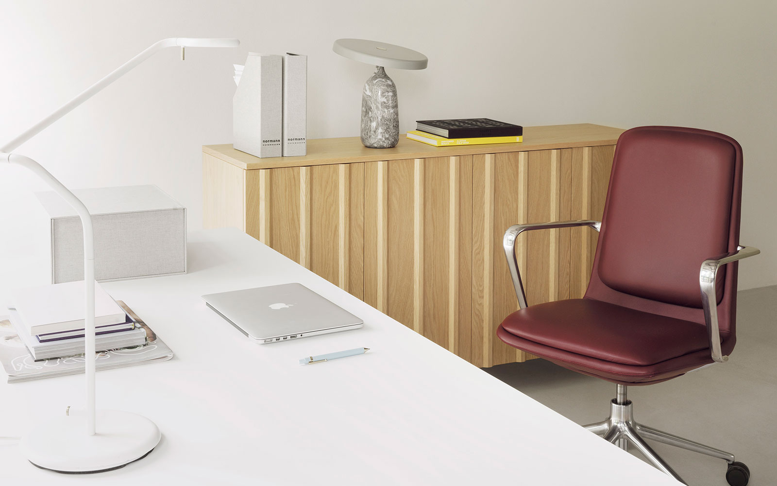Lighting has a direct effect on your mood, energy and productivity. The ideal desk light can be adjusted in both light intensity and direction. Flow Table Lamp can do just that and is characterized by its slender, architectural design and mobility, making it the perfect work companion.