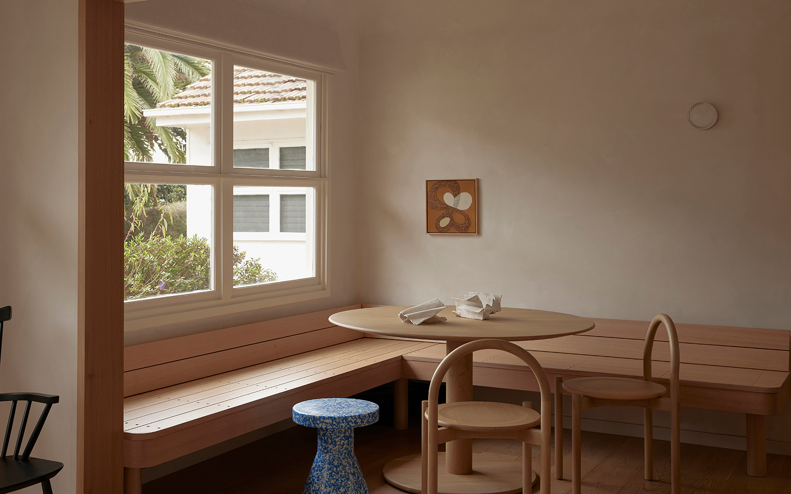 A family of three with two dogs longed to live in close proximity to the surf breaks and fishing spots of Portsea. The project involved a renovation and refurbishment of a compact, two-bedroom unit with the intent to create a calm and subtle interior that references the coastal setting. For the project, Normann Copenhagen’s minimalistic Circa Barstool and playful, ocean-colored Bit Stool were used.
